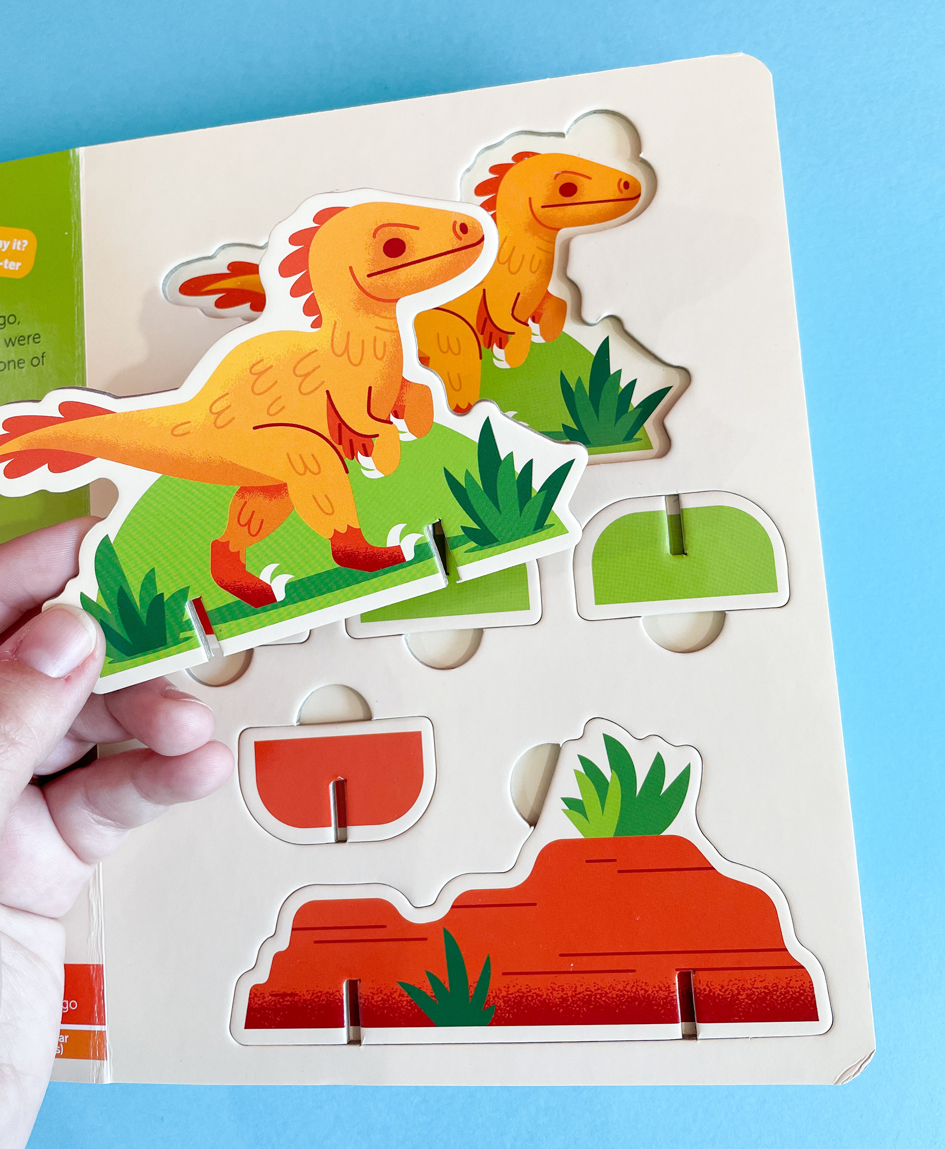 This sturdy board book features 12 chunky press-out pieces that can be used to build six dinosaur species and their environments.